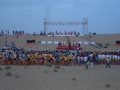 6月29日晚,靜謐的鳴沙山月牙泉景區(qū)內(nèi)一改往日模樣,彩燈彩旗,佳麗霓裳,尖叫鼓掌,繁星流沙,讓這里呈現(xiàn)出別樣的風(fēng)采。當(dāng)晚,國際知名護(hù)膚品牌"美津植秀"中國文化基金啟動(dòng)儀式暨明星見面會(huì)在鳴沙山下舉行。